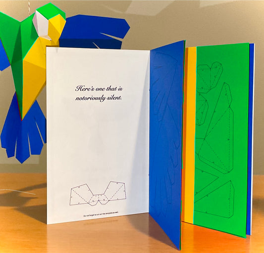 Each transformable card is carefully cut to size and bound together by hand using an old book binding technique. We use high quality 60lb card stock, to ensure the sculpture it turns into has great rigidity and stunning color.